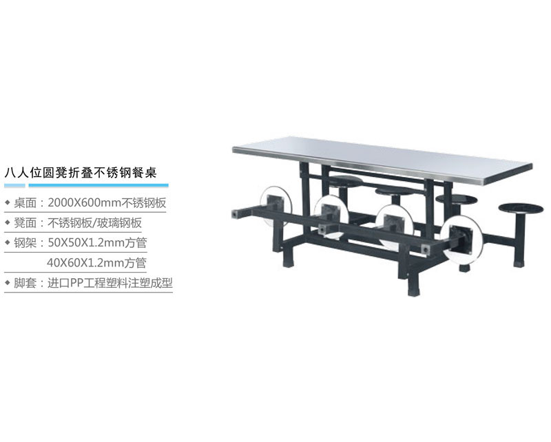 八人位圆凳折叠不锈钢餐桌